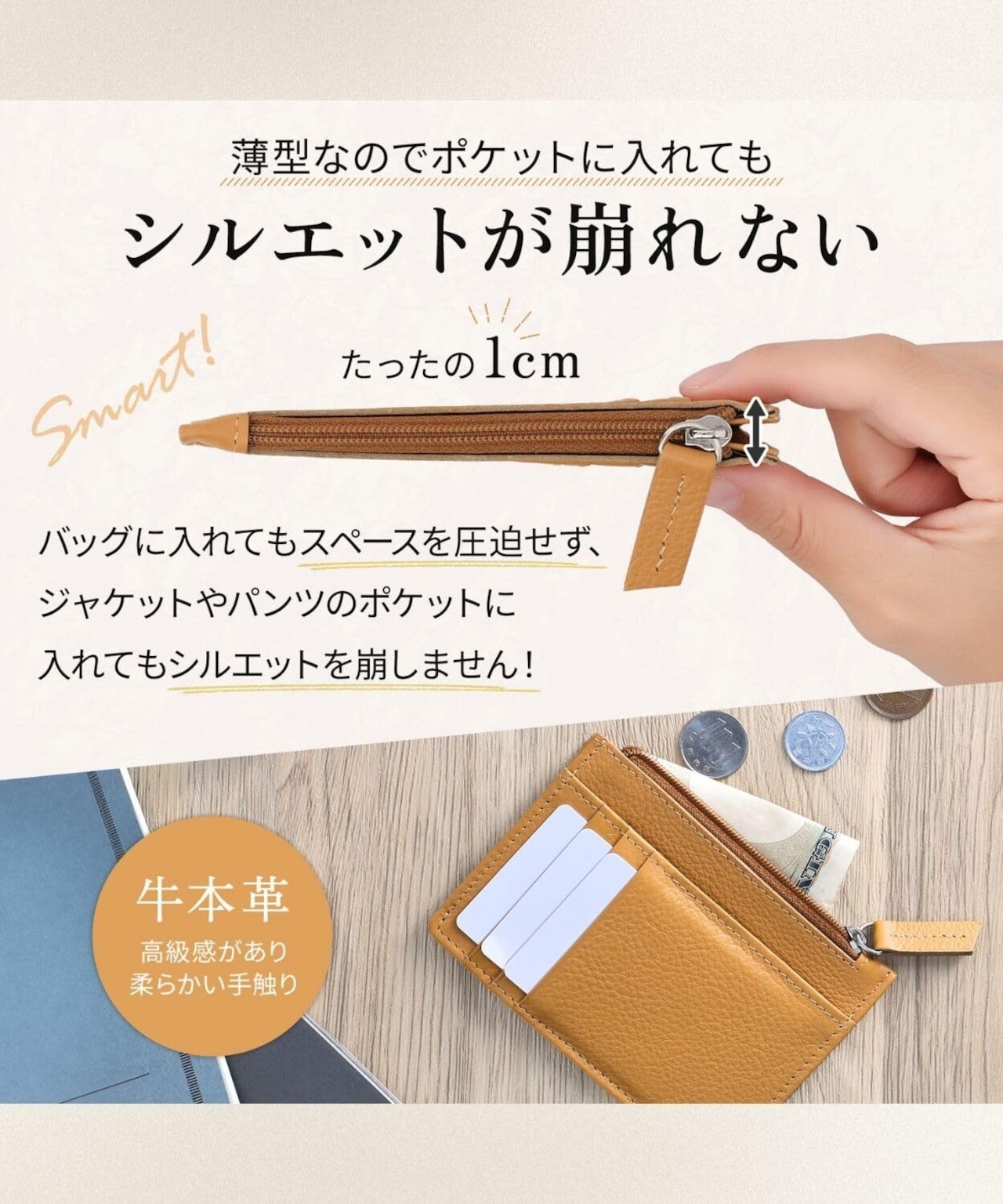 【たった約1cmの薄さ。ポケットに入れても違和感なし】